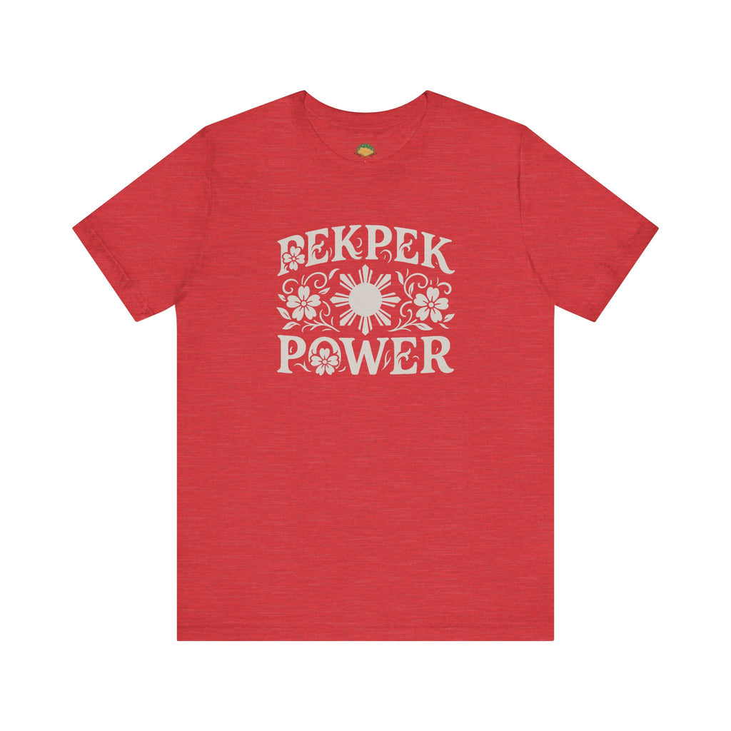 Turn heads and get a few laughs with the Pekpek Power T-Shirt! Featuring the bold Philippine sun, this unisex jersey shirt is soft, comfy, and ready to show off your Girl Power with pride.
